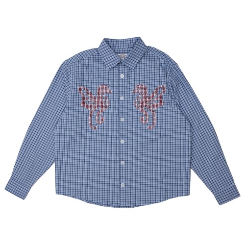 HODDLE PRIMARY LOGO SHIRT GINGAM BLUE