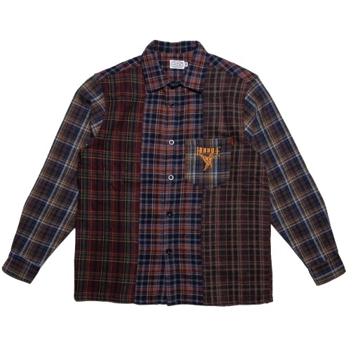 HODDLE POLYURA PATCHWORK FANNEL-OVER DYE LS SHIRT
