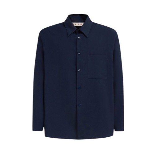 MARNI DEEP BLUE TROPICAL WOOL LONG-SLEEVED SHIRT